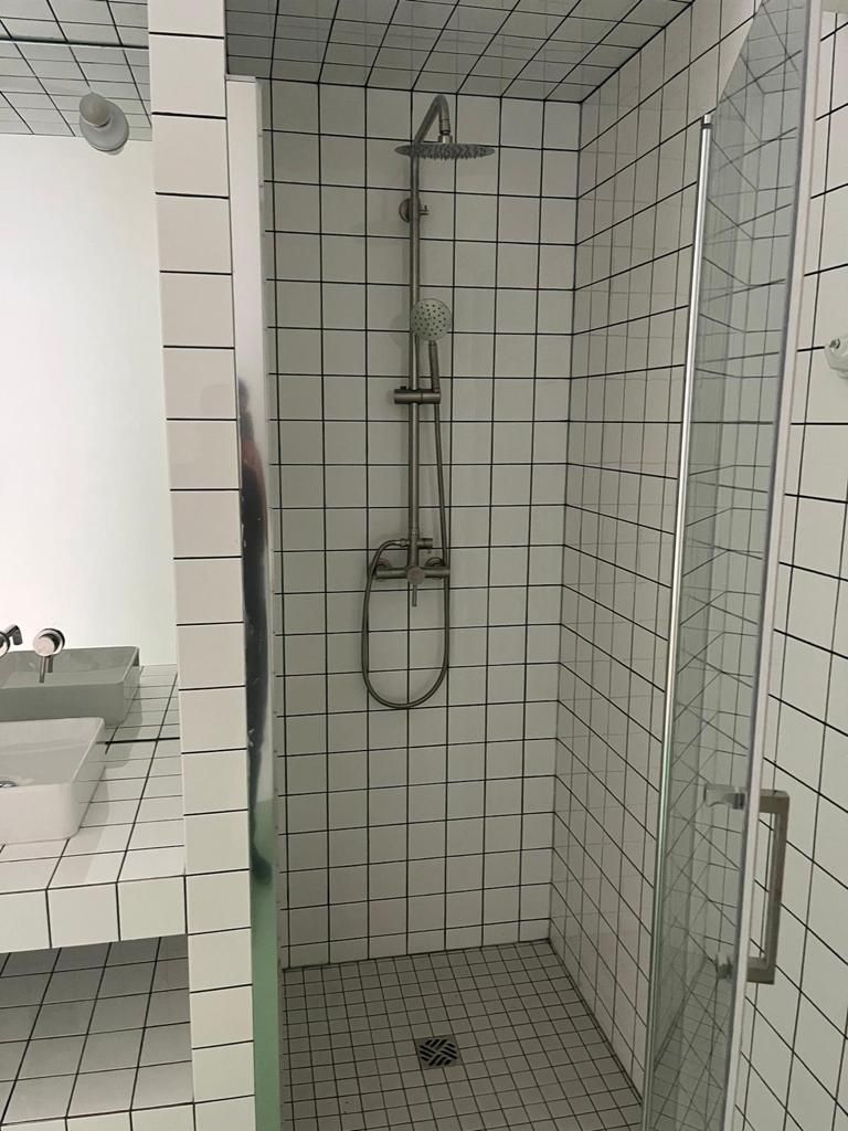 Une face du cube a été dédiée aux sanitaires, comprenant une douche et un lavabo, conçus pour maximiser l'espace tout en offrant confort et fonctionnalité. L'autre côté du cube abritait une cuisine encastrée, élégamment aménagée pour répondre aux besoins pratiques tout en conservant une esthétique moderne.