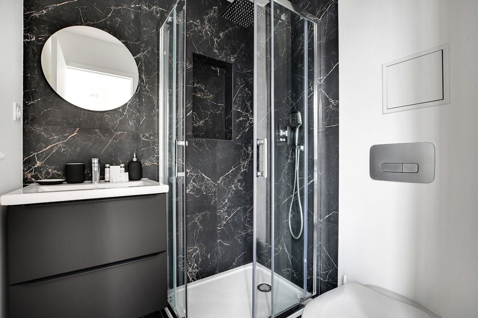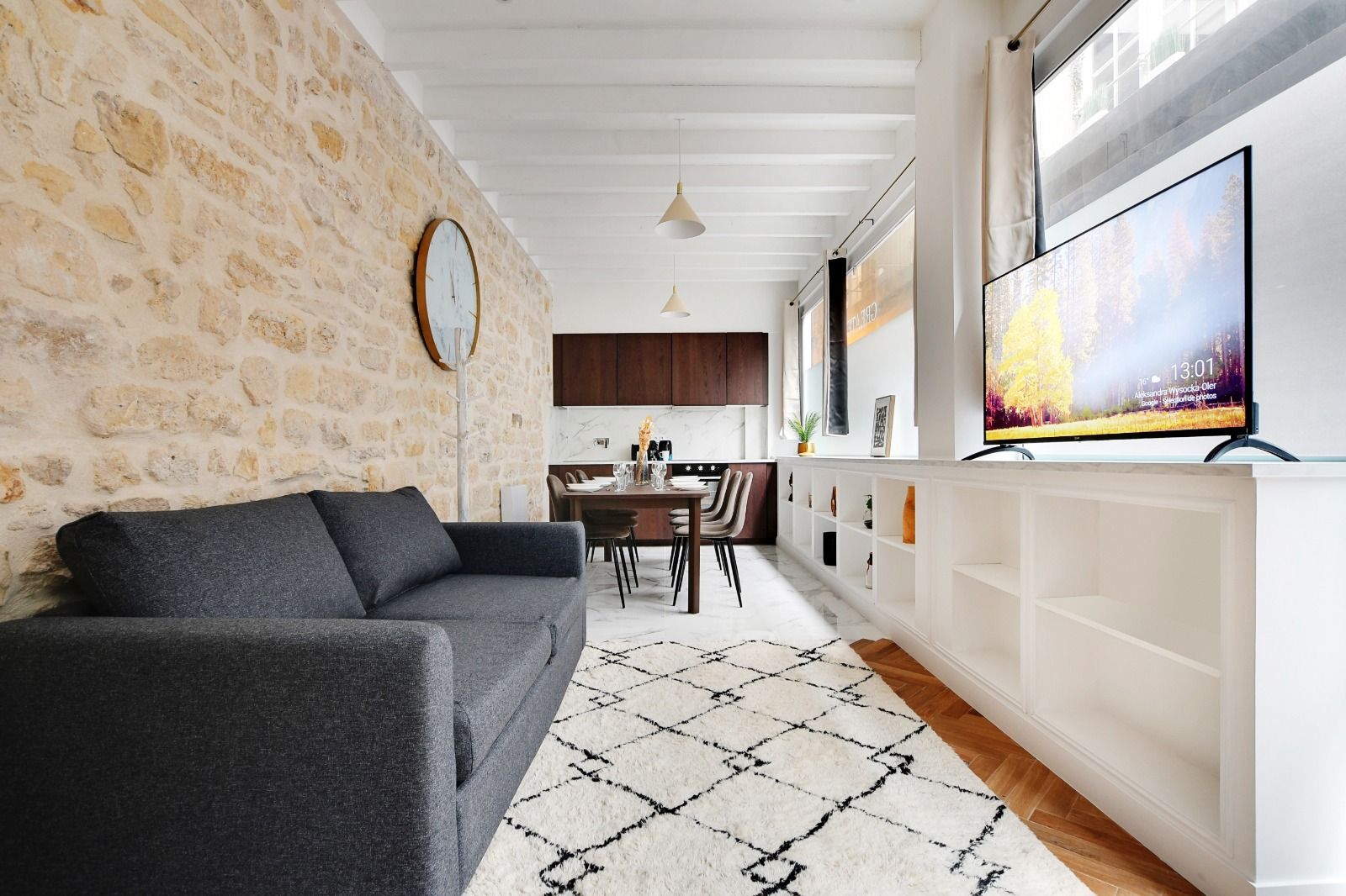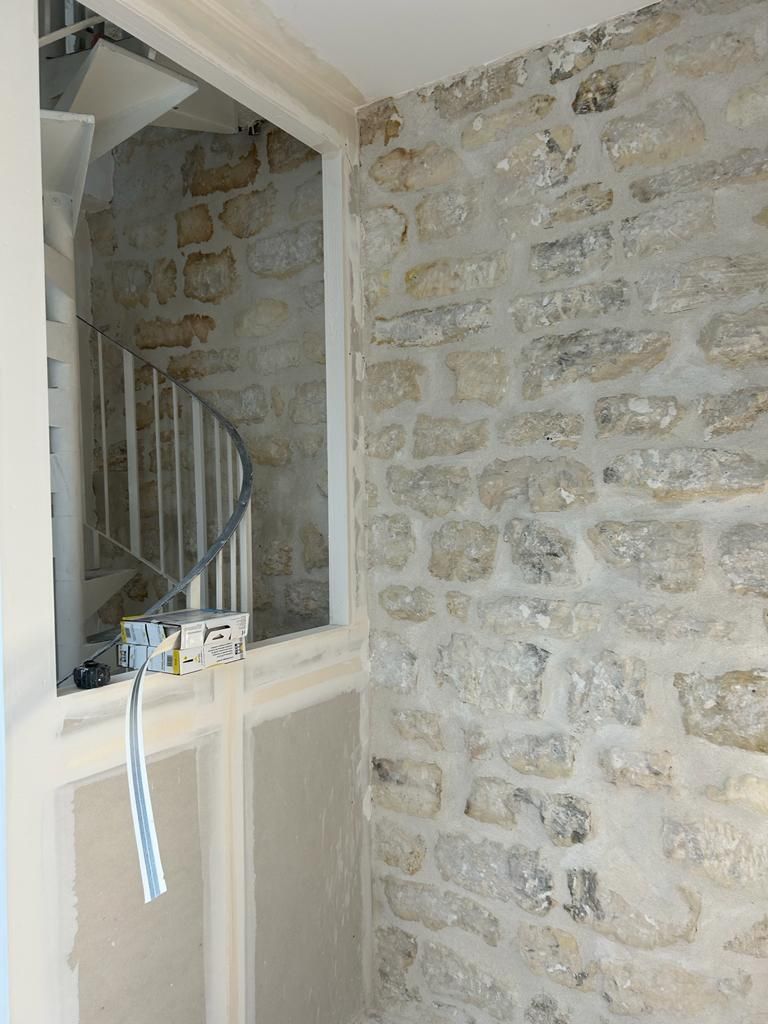 La pièce maîtresse de cette rénovation d'appartement parisien est sans conteste la restauration minutieuse des pierres apparentes. Ces éléments architecturaux, empreints d'histoire, confèrent à l'appartement une élégance intemporelle. Belmard Batiment a su préserver et sublimer ces témoins du passé, créant ainsi un écrin unique où le charme authentique se mêle à la sophistication contemporaine.