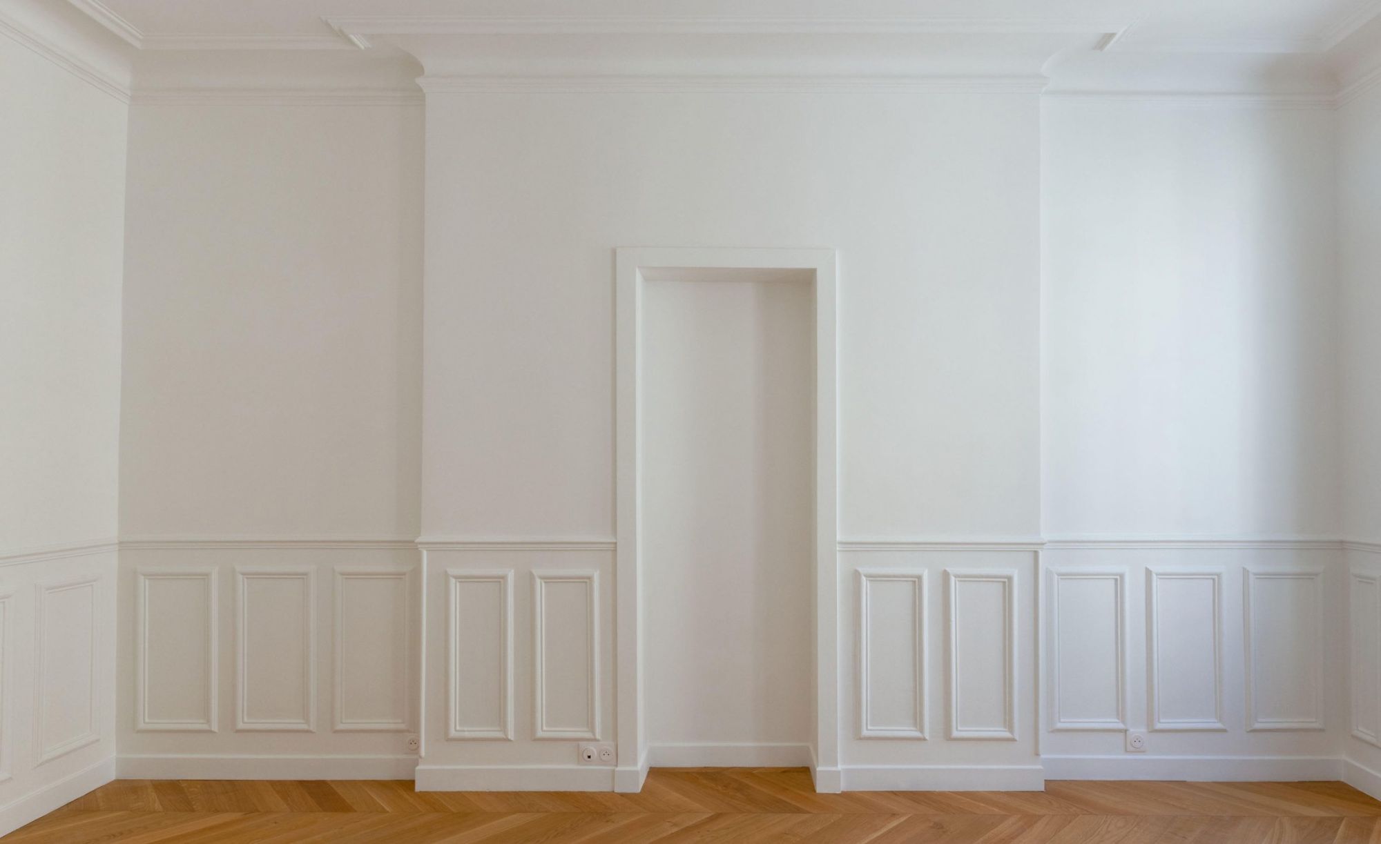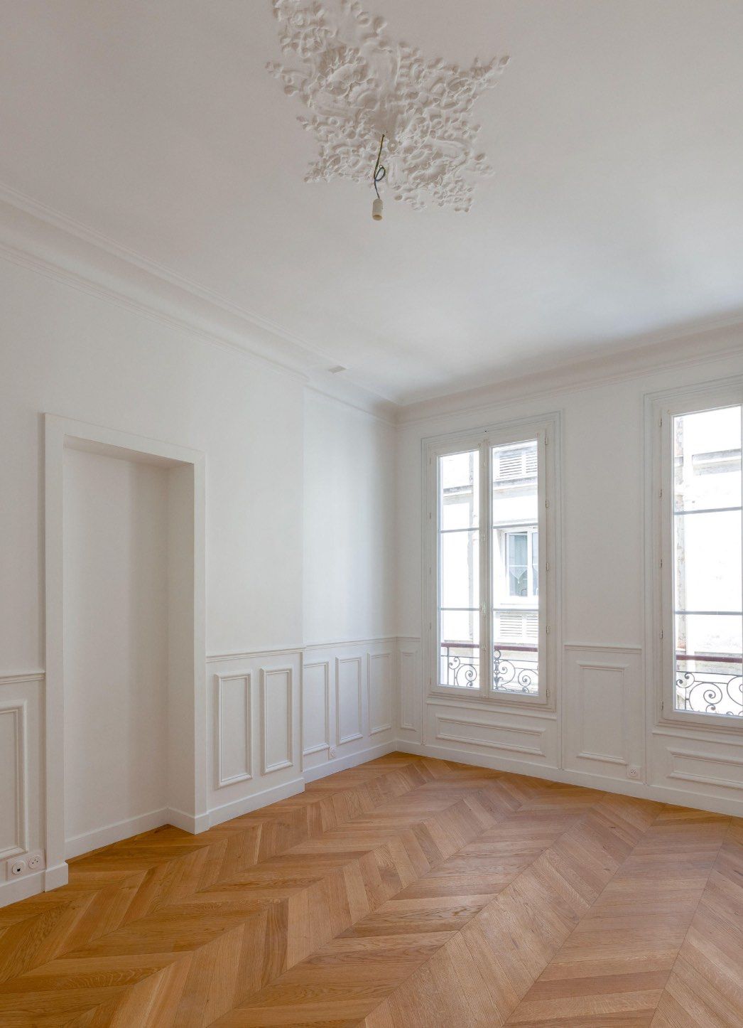 Voici la rénovation d'un appartement T3 à Paris, caractéristique de l'architecture parisienne avec son parquet en pointe de Hongrie et ses moulures élégantes sur les murs et au plafond. Cette réhabilitation d'appartement parisien a exigé un travail soigné pour préserver le charme unique de l'appartement, tout en apportant des améliorations modernes. Nous avons effectué la mise en conformité de l'électricité, restauré avec soin les sols et réalisé une rénovation complète de la peinture de cet appartement de 80 m². La rénovation de l'espace cuisine a été un point clé, avec l'installation de menuiseries fournies par Houdan, l'un de nos partenaires cuisinistes de confiance.