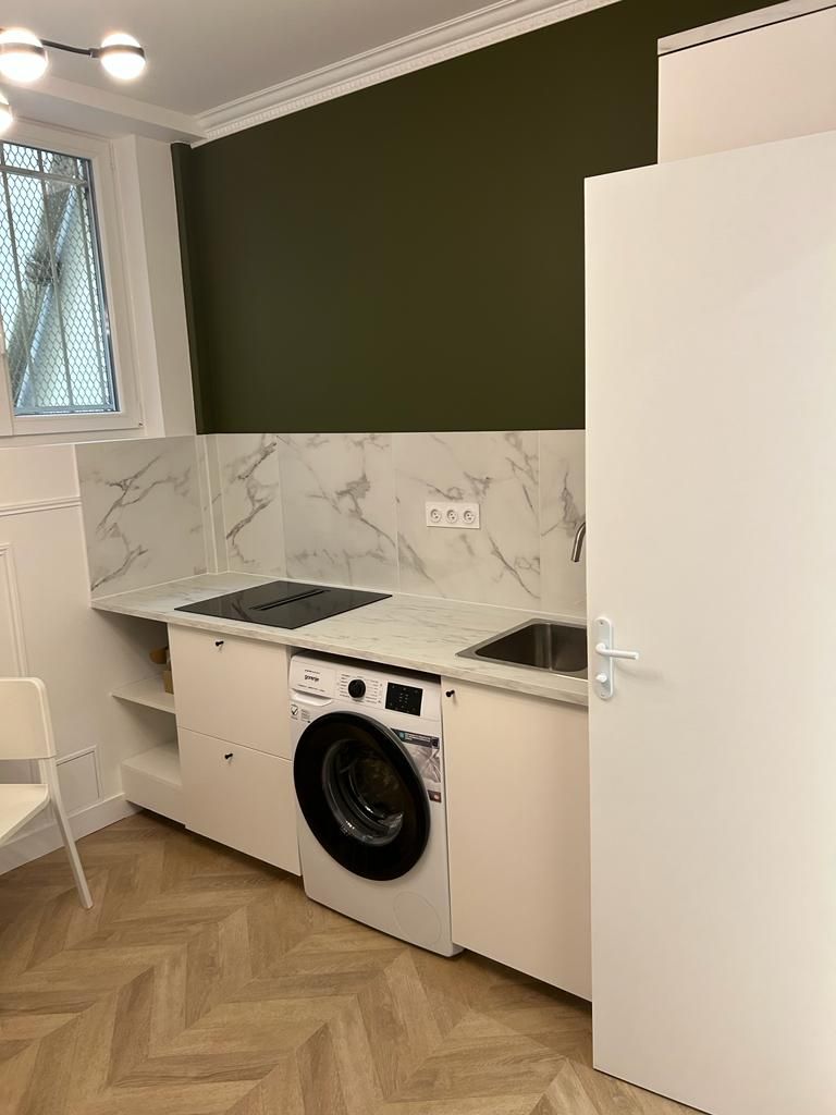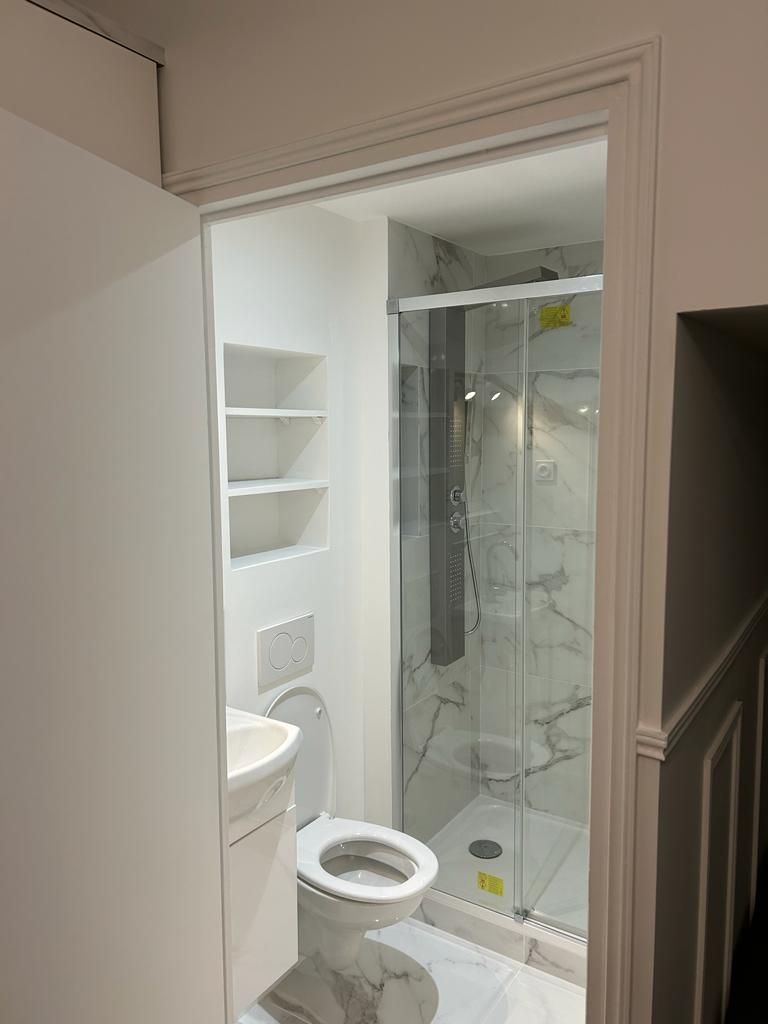 Pour rendre le studio attrayant pour la location saisonnière, notre entreprise spécialiste de la réhabilitation de logement à Paris, a intégré des aménagements modernes tels qu'une cuisine compacte, mais entièrement équipée, une salle de bain fonctionnelle avec des finitions de qualité, et un espace de vie confortable qui peut également servir de chambre. Dans ce projet de rénovation de studio à Paris 4, nous avons veillé à inclure des équipements modernes tels qu'une cuisine compacte entièrement équipée et une salle de bain rénovée avec des matériaux de qualité supérieure, alliant confort moderne et charme traditionnel parisien.