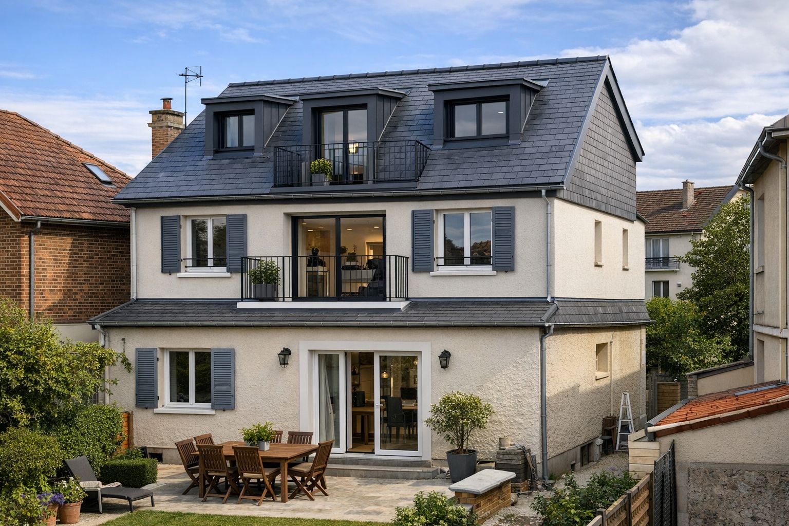 Le tissu urbain étant dense à À Boulogne-Billancourt, les maisons sont proches les unes des autres. Une extension verticale doit donc être cohérente avec l’architecture du bâtiment existant.